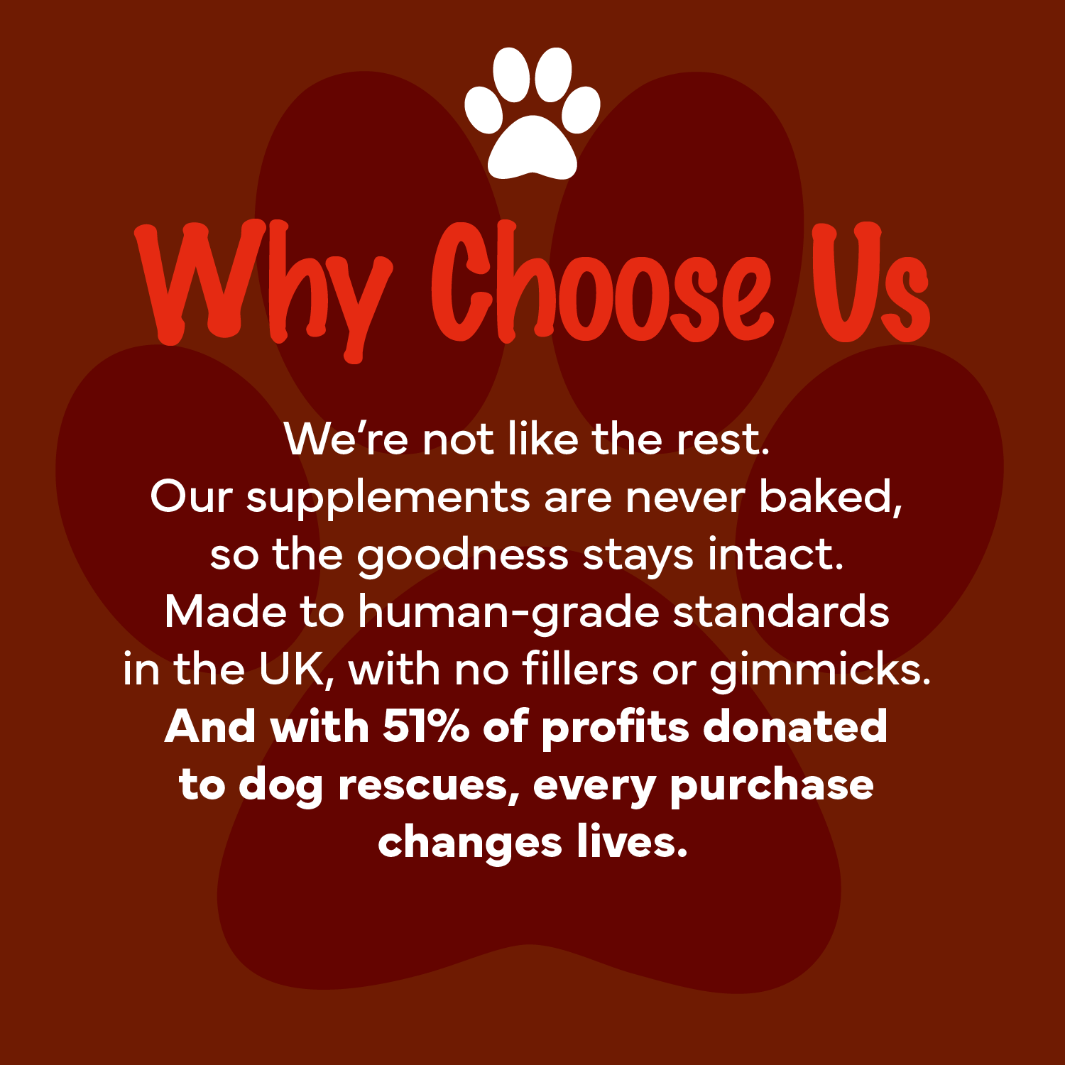51% of profits go to animal welfare charities. By supporting your dog's health, you're also helping thousands of others who aren't as lucky.